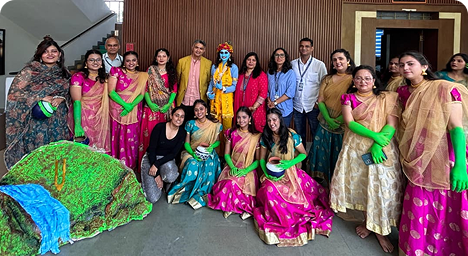Leadership and learners together a special moment with the Deputy Director Dr. Rajeshwari Patil , Chancellor Prof. Paramanandhan Balasubramanian, and students.